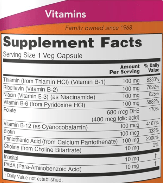 توفر كبسولات B-100 مجموعة كاملة من فيتامينات B بالإضافة إلى الكولين والإينوزيتول. تعمل هذه الفيتامينات على دعم إنتاج الطاقة والحفاظ على استقلاب الهوموسيستين الصحي وتعزيز صحة الجهاز العصبي.* فيتامينات B قابلة للذوبان في الماء، وباستثناء فيتامين B-12، فإن تخزينها في الجسم محدود وبالتالي تتطلب تجديدًا يوميًا. في حين يتم تخزين فيتامين B-12 في الكبد، فإن المصادر الغذائية من أصل حيواني فقط (اللحوم ومنتجات الألبان) وقد يكون تناول مكملات فيتامين B-12 مهمًا بشكل خاص للنباتيين.