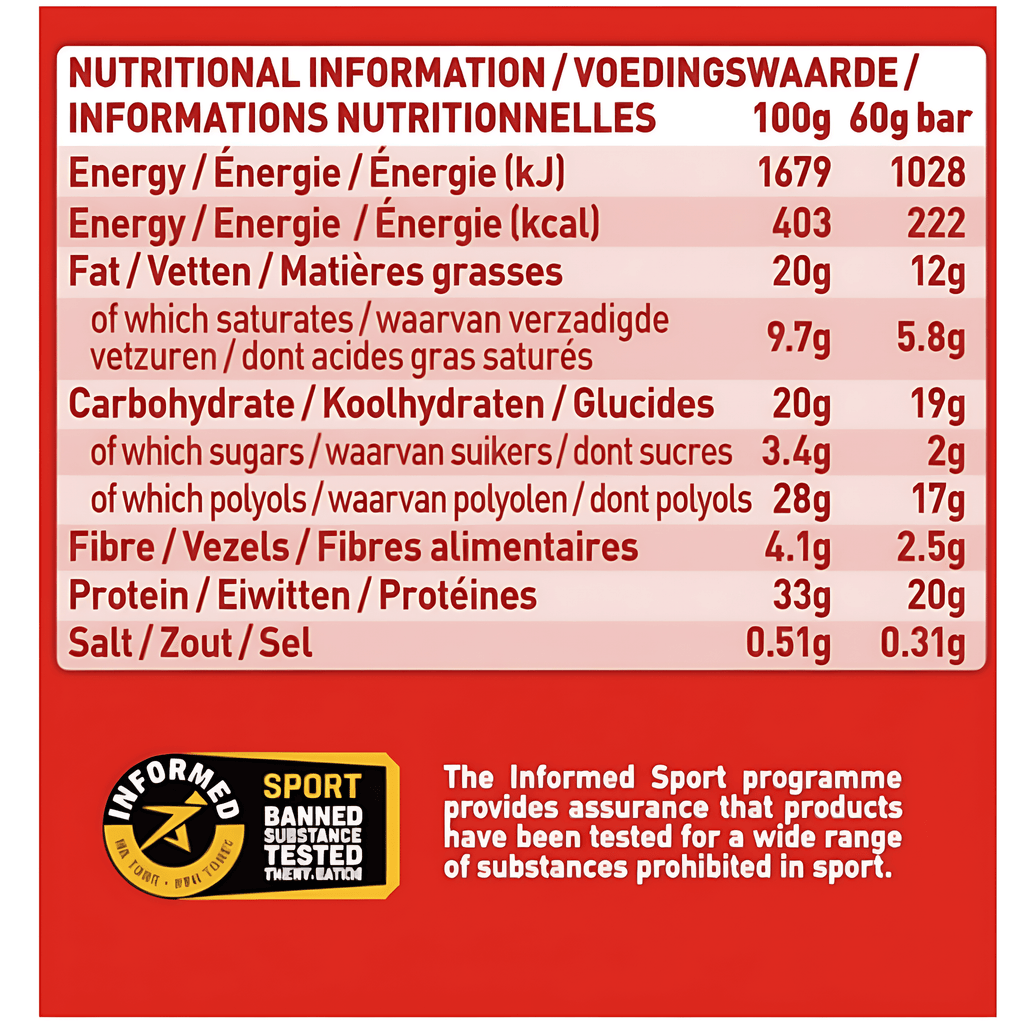| Nutrient | Per 100g | Per 60g Bar |