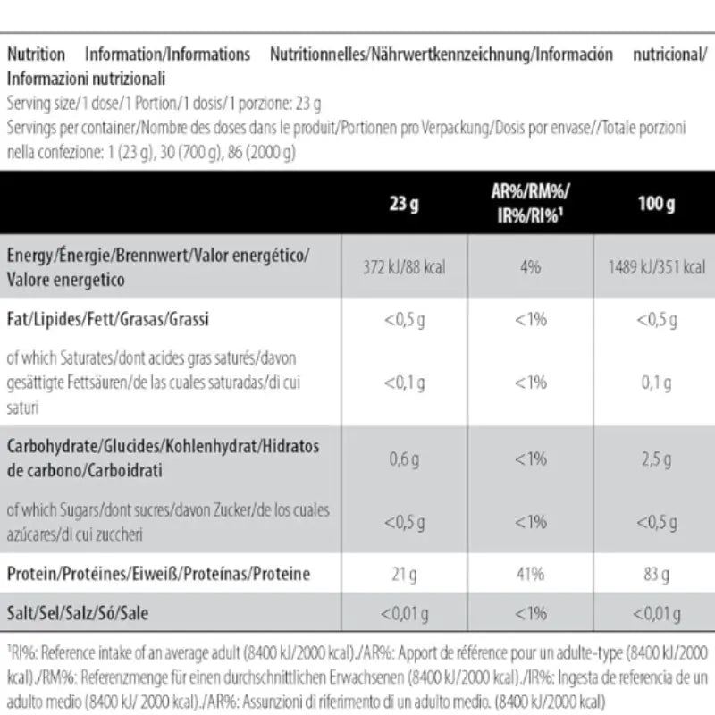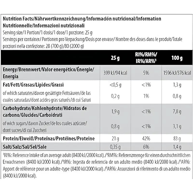 Number of servings: 1 (25 g)/28 (700 g)/80 (2000 g)/160 (4000 g)